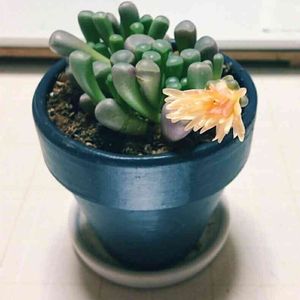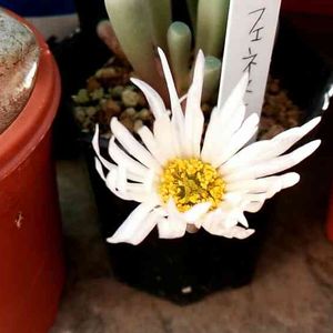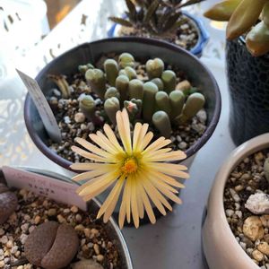 あけましておめでとう御座います フェネストラリア五十鈴玉のお花でお祝い🎶 咲いてるからお水あげた方がいいかな?