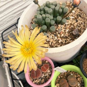 イオンの花屋さんで 遂に出逢いました(∩´͈ ᐜ `͈∩)˖*♬೨̣̥ この札のはホムセンで見てもリト&コノと、他のメセンしか会えなくてねー。 すっかり虜になってるフェネストラリアに出逢えた事がなかった。 母と1つずつ購入しました。 群玉か五十鈴玉かは花が咲くまでのお楽しみ𖡼.𖤣𖥧(꒪ˊ꒳ˋ꒪)𖡼.𖤣𖥧