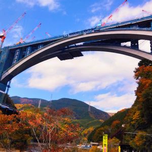紅葉を見に山北町、丹沢湖一周ドライブ🚗 ❶新東名高速建設中の日本最大級の『山北天空大橋』 いつ見ても日本の技術は素晴らしいです🌿 ❷〜❺中川温泉へ行く前に天気が良いので丹沢湖の周遊道路を撮影して来ました🍁 紅葉が真っ赤で、何処見ても絵になる風景でした🥰