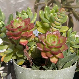 3年目の冬を迎えた 花友さんから頂いた多肉の寄植え綺麗です🪴💞 雅楽の舞の葉がピンクに💖 元気になった久米の里🌿✨