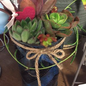 リメ缶に少し前に買った多肉ちゃん寄せ植えしました!