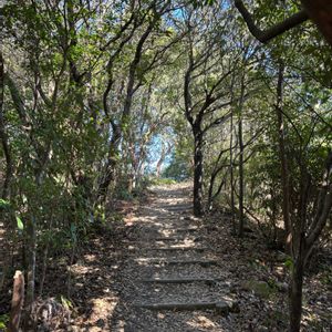 横山展望台の、道。(続) 登って行きたくなるでしょ♡^_^ 駐車場から数分でいくつかの見晴台が繋がっていて、よく整備されているので山歩きに慣れていなくても大丈夫🙆 当日も樹木の伐採(剪定)の方が入られていて、こうやって人の手で美しく安全に管理されているんだなぁ、と実感しました♪ 感謝♡ 3枚目は道から見た斜面です