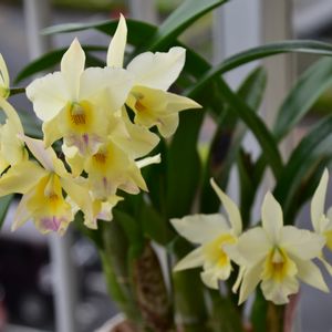 ほぼ満開🥳 すごくいい香り☺️ 房咲きカトレア 、優しい黄色に混ざるほんのりピンクがお気に入り🥰