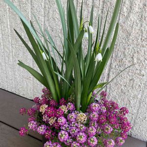 鈴蘭水仙・スノーフレーク スノーフレークとアリッサムの寄せ植え スノーフレークのお花が可愛らしい