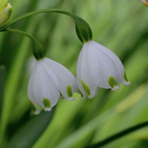スノーフレーク 別名 鈴蘭水仙 ヒガンバナ科 原産地 東ヨーロッパ 〜西アジア 野生化する程とても丈夫な花です。🌱🌱🌸 緑の斑点が白い花を引きたて、 スズランの様な🔔が下がっる容姿かまたかわいいです。🥰