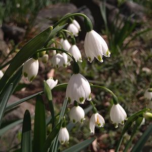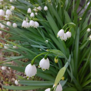 スノーフレーク ヒガンバナ科スノーフレーク属の多年草 和名「鈴蘭水仙・大待雪草」 英名「Summer snowflake」 花言葉「純潔」「汚れなき心」 花言葉は清楚で可憐な花姿に由来しています。 小庭にて 22.04.13