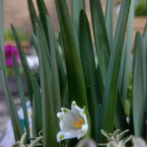 わっ、こんな所から👀‼️ 以前投稿した鈴蘭水仙(スノーフレーク)は駐車場🅿️裏で地面から咲いてる花💠 こちらは去年寄せ植え用にお迎えした鈴蘭水仙🤍 今年は葉だけで咲かない😣と思ってた矢先、今朝見つけたお花💠 グーッと伸びて咲くイメージを破ってくれました🤗