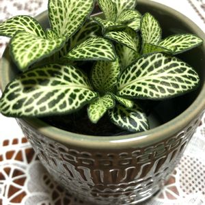 おはようございます🎵 今日でGSの仲間入りして1年皆様の励ましとアドバイスのおかげです❗ 感謝しています🎵 フィットニア2種類 この初春から、寄せ植えに使いましたが、何度かの寒の戻りで、元気がなくなり、新しくお迎えしました。 冷たい水も、厳禁です。 ぬるま湯だそうです❗ 観葉植物なのに、甘く考えていたこと、反省してこの子達は、頑張って育てたいです❗ しばらくは、部屋で管理します。