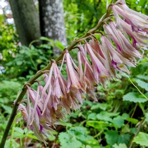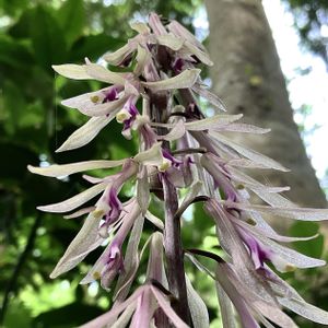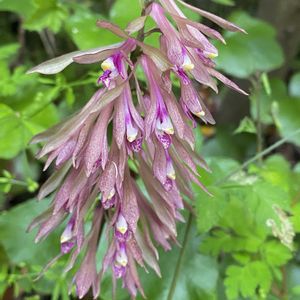 地味ですが、とても素敵な花です♪ サイハイラン(采配蘭) ラン科 サイハイラン属 多年草 北海道、本州、四国、九州に分布。 山林内に生育。 偽球茎(バルブ)は卵形。 越冬性の葉は狭長楕円形で皮質、長さ15〜35cmで先端は尖る。普通一葉がつく。 基部は鞘状になって茎を抱く。 花茎は直立、高さは30〜50cm。 淡紫褐色の花を総状花序に10〜20個、下向きにつける。 萼片と側花弁は線状披針形で、長さ3〜3.5cm、唇弁は長さ3cmで紅紫色になる。 花期5〜6月 6月7日撮影 福島県 南部