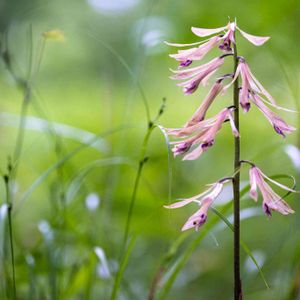 花が下向きに垂れ下がって咲いているサイハイラン💗 よくみると花の内側に濃いピンクの斑点💓💓がある個性的な欄でした😊💖 🔎細長い花被が垂れ下がる様子を、軍陣の指揮に用いた「采配」に例えたのが名前の由来だそうです❣️ 🏷️乙女色クラブ🏷️金曜日の蕾たち🏷️山野草マニアに参加させて頂きます🥰