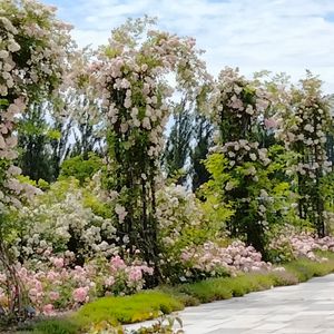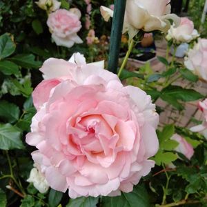 🏷️水曜ローズショウに参加 お隣側からバラ羽衣を… 右下はプリンセスドゥモナコ のっぽのジキタリス、もう少し早いとまだ花が有ったのに〜