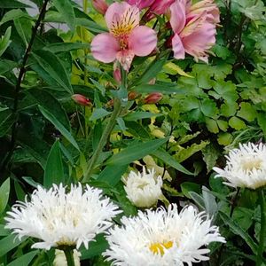 アルストロメリアとマーガレット 寒さに弱いのが多いアルストロメリアですが、このこはとても丈夫です。 この白いマーガレットはリベンジで去年植えたもの