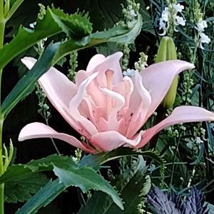 八重咲き薄ピンク色のムクゲ(木槿)の花がふわっとして ステキでした。