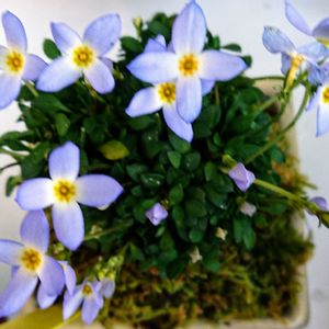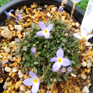 青花ヒナソウ💙✨ 今年はお正月そうそう 山野草をいくつかお迎えしました。 山野草は あまり育てた事が無いので少し心配ですが、小さくて あまりにも可愛いのでお連れしました(*¨)~♥ 3号鉢に植えました🪴*.*゜ 植え替えする時に お花が2つ散ってしまいました😅