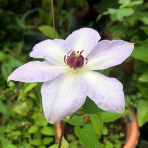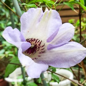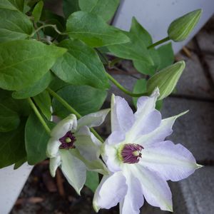 今日の我が家のお花は クレマチス のイワン・オルソンさん🎵 両花とも同じ鉢で咲いていますが、 咲き始めの頃は上のようなグリーンのすじ入りなのに日が経つに連れ全体的に水色っぽく変化してる事が判明😊🍃 どちらも優しい雰囲気で癒されています💕