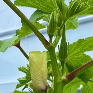 オクラも咲いて❣️ 収穫はいつかなぁ😊