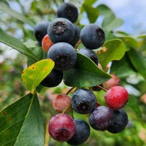 ブルーベリー🫐 ①そろそろ収穫 ②重みで枝が・・ ➂収穫後。きれいな色の実。 ④10分で約1kg収穫😍⤴️⤴️ 一晩冷凍して、グラニュー糖400gと2個分の 🍋🍋果汁つかったら美味しい🫐🫐🫐ジャムができました。 ⛰️でお知り合いになった方から「熟したからぜひ来て~☺」と嬉しいお誘い😃🎶。