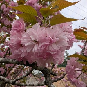 昨日お散歩で満開の八重桜に出会えました🌸🌸🌸🌸🌸 葉っぱも出ていました🌿 八重桜は牡丹のようにふんわりとたくさんの花をつけることから別名を牡丹桜(ボタンザクラ)とも呼ぶようですね🌸 葉を付けてから咲く特徴があるそうです🌿 染井吉野よりも大きいので見応えありました🌸✨🌸✨🌸 追記:関山という八重桜に似ているように思います🌸