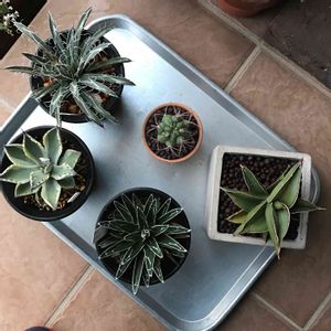 ほぼ1年後の姿シリーズ㊾ ※最近比較した子達は除外 ギムノカリキウム 新天地(でしょう!) ダイソー産 左下:去年11月 それ以外:最近 若干成長(していると思いたい)。 鉢替えしているから大きくなっているはず。ただ、サボテン棚が倒れた時に植え直しなら分からない(PCにある観察メモを見れば分かるかな)。 引き続きトゲが立派になるように育ててあげたい。