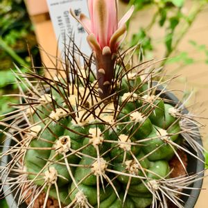 暑い🥵土曜日の朝です。 近くの家具雑貨(植木鉢+植物もあり)アクノレッジさんで🉐にお迎えしていたサボテンに花芽がポコポコ付いて、咲き始めました。 平日は私が出勤した後に開花し、帰宅した時には萎んでしまっているので、今朝やっと花が見られました。 我が家の他のサボテンは派手な色の花ですが、この花は柔らかいベージュピンクの花色で気にいりました。 アクノレッジさんは、白山山野草店のガラス張り店舗を居抜き改装したお店なので植物には適したお店。お洒落な鉢の盆栽もあります。 ガラス張り温室仕様なので商品が日焼けするから布を上に張ったり苦労されてると伺いました。 山野草店時代に入っておけばよかったと後悔しきり…若い頃は山野草専門店はなんだか敷居が高くて入れなかったんです。広い店内どんな植物があったんだろうと妄想するしかありません。