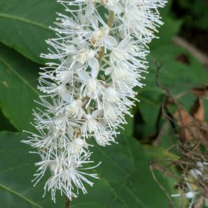 サラシナショウマ(晒菜升麻) キンポウゲ科サラシナショウマ属 別名イッポンショウマ 多年草 在来種 花序は総状、長さ35㌢以下、基本分岐しない。雄花と両性花が混生。 花序軸や小花柄は白色〜灰色の軟毛が密生。花弁は楕円形、花糸は白色。花弁や萼片は花が咲くと直ぐに落ち、その後に雄しべが伸び、多数の長いシベがブラシのように見える。その状態を私は花が咲いているというふうに思っていました。花は短い花柄の先に咲き(4、5枚目)それがイヌショウマとの違いのようです。 この写真は既に花弁も落ち結実しているものも多く見えています。 イヌショウマには花柄が無く茎から直接花を付けます。 先日(サラシナショウマ)と投稿したのは明らかに花柄が無いのでイヌショウマではないか、と判りました。 10/18投稿のサラシナショウマは間違いでした。イヌショウマだと思います。 本日、訂正しました。 御迷惑をおかけしましたm(_ _)m