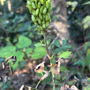 ①②このグロテスクな実はいったい? ③枯れた花と葉の様子からサラシナショウマと分かりました。両性花と雄花が混生しており、実がついてないのは雄花の跡でしょう。 ④お花はエレガント❣ ①③12/1神奈川県④9/7長野県