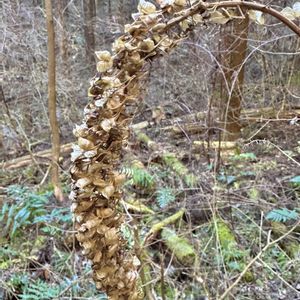 1/31 山歩き🥾 一方こちらの大きな枯れ姿は、サラシナショウマですね😍 もう種子はぜんぶ出てしまって、枯れた殻だけが残っていますが、このサラシナショウマの実はサナギそっくりです。 とても薄くて、握るとクシャクシャと軽く潰れてしまいます。