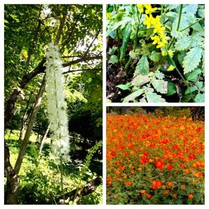 🌼秋の花🌼 左 サラシナショウマ 右上 キンミズヒキ 右下 キバナコスモス