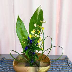 レッスンで作ったスタンディングブーケ。 レッスンでは上手くスパイラルにならず、夜な夜なやり直してなんとか。 花材のボリュームがあるので綺麗に立たせるのは難しい…。練習あるのみ。 このまま浅めの器に飾ります。