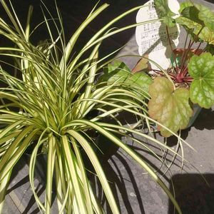 ベアグラス。 ヒューケラ。 シマトネリコの根元花壇に植えようかと考え中です。 朝日と西日がガンガン当たるけど果たしていいのか。 オレンジ系のヒューケラが欲しかったのですが、田舎のホームセンターには名無しのこの子しかありませんでした。ネットに手を出すか…
