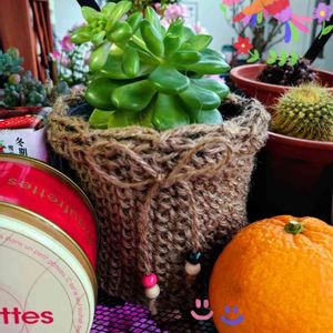 おはようございます😃 Flowerさんからのステキ便届きました🏵️ 春萌ちゃん用のかわいい麻の鉢カバー♥️ アクセントのビーズがついたリボンが オサレ🎀 Flowerさん印の甘夏とチョコも一緒です😁 春萌えちゃんがグレードアップ⤴️⤴️ Flowerさん、ありがとう〰️😆⤴️💓