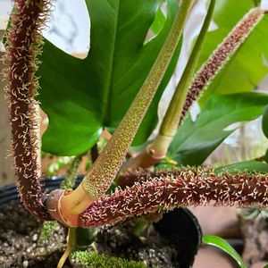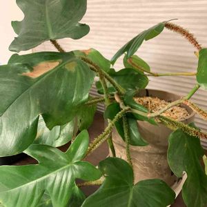 フィロデンドロンスクアミフェルム 夏に盛大に葉焼けさせてしまってから動かなくなってしまい心配だったけど最近になって新しい葉を出してくれるようになりました(;^ω^) 茎?の部分のモケモケがお気に入り(笑)
