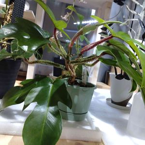 ■Philodendron squamiferum ・フィロデンドロン スクアミフェルム 室内のシェルフの一番上に乗せていたら、びろーんと垂れて、どこまで伸びるのか。。。