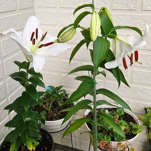 【オリエンタルリリー カサブランカ】 みどりのまとめには投稿したんだけど、こっちにもup🤍 ⬅️3年目のカサブランカ ➡️1年目のカサブランカ(プレゼント) 上向きと下向きってほんとはどっちがいいのかな?