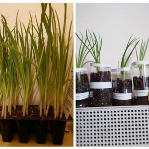 カネコ種苗様の、極苗ネギプレゼント企画で、当選させていただいた、長ネギの、一翠太(いっすいふと)。 準備がようやく整い、子供と一緒に、プランターに定植しました。 届いてから1週間以上、小分けのプラグポットで、そのまま管理していたのですが、苗は元気なままで、助かりました‼️ さすが、極苗なのですね。 ポットから抜いてみたら、きれいな根がはっていました。 今回は、 初心者🔰のため、ばらさないで、ポットから抜いたまま数本一緒に植え付けしてみたものと、 1本1本、根をばらして植え付けしたもの、 それからキュウリのコンパニオンプランツとして、青ネギのように混植したもの、 この3パターンで定植してみます! 長ネギ、初めてチャレンジしますが、極苗なら何とか安心⁉️ 頑張ります💪(ง •̀_•́)ง