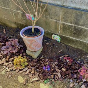 頂いたオリエンタルリリー(カサブランカ)を早速植え付けしました💖 庭の壁沿いの日陰、ヒューケラゾーンの後方へ🍁🌷✨ 鉢に入っているのは矮性サルスベリです 壁側が西で、春からはサルスベリの葉も芽吹いて良い感じに日陰になるはずなので、元気に育ってくれるといいな〜と思います!