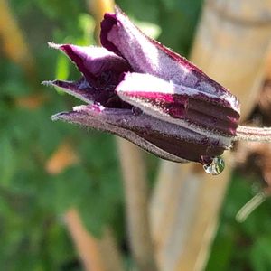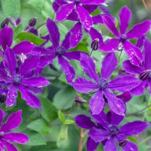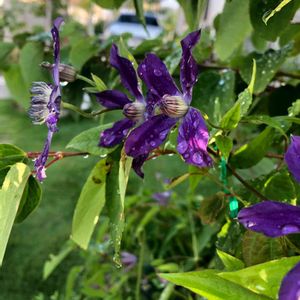 雨粒の重みでうなだれているクレマチス アフロディーテエレガフミナさん💜 枝が混み過ぎて誘引がおいつきません😂✨✨