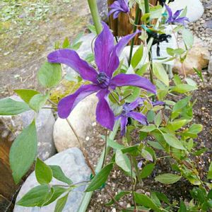 クレマチス アフロディーテエレガフミナ💜 GSの皆様のpicで知り先日迎えました シベまで紫の大人っぽいクレマチスでした😊 庭いじりも時々やっていて歩道のセメント平板の位置がしょっちゅう変わっています😅