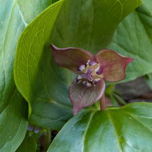 素敵な葉のエンレイソウに今年も会えました。 エンレイソウ(延齢草) シュロソウ科 エンレイソウ属 多年草 北海道、本州、四国、九州に分布。 山地の林下に生育。 茎の先に菱形の先が尖った3枚の葉を輪生。 長さ10〜20cm。網状脈がある。 葉の中心から立ち上がる花柄の先に、花を1個だけつける。 緑色から黒紫色の外花被片だけで、花弁はない。(稀にあるものもある) 雄蕊は6本、雌蕊は1本、柱頭は3裂し、小房には稜がある。 花期4〜7月 福島県 郡山市