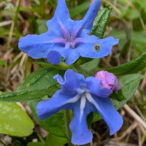 昨年初めて見れたホタルカズラ。 今年も見に行って来ました♪ ホタルカズラ(蛍葛) ムラサキ科 ムラサキ属 多年草 北海道、本州、四国、九州、沖縄に分布。 日当たりの良い草原、林中の半日陰の草地に生育。 茎は細く直立し、高さ15〜20cm。 開花後に根基から横に這う長い無花枝を出し、先端から根を出し新しい株を作る。 全体に開出した粗い毛がある。 葉は狭長楕円形。冬に枯れないで残り、表面に鋼毛がある。 茎の上部の葉の付け根に青紫色の花をつける。 花冠は直径15〜18㎜。裂片には白い5本の稜がある。 分果(堅果)は白色て平滑。 花期4〜5月 ①の稜は紫色ですね。 5月22日撮影 郡山市 逢瀬公園