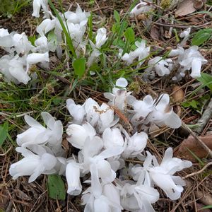 林の中にいらっしゃるのかと思ったら、広場にも。たくさん♪ ギンリョウソウ(銀竜草) ツツジ科 ギンリョウソウ属 多年草 光合成を行わない腐生植物。 日本全土に分布。 林内、木陰に生育。 地下に地下茎と根がある。 花序は花茎があり、高さ10〜20cm。 下向きに1個、筒状鐘形。 萼片は1〜5個、花弁は3〜5個でどちらも長楕円形。普通無毛。 花期4〜8月 5月11日撮影 郡山市 逢瀬公園