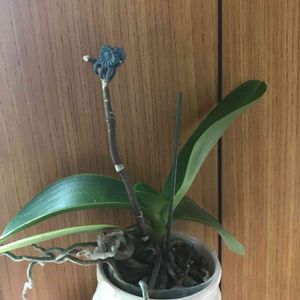 これも薔薇と同じホームセンターで見切り品になってた胡蝶蘭🙂 見切り品じゃけんか直射日光の当たる外の棚にいっぱい出されとったうちの1株を救出😢¥200 中くらいの方は一鉢¥800くらいしたし 4.5鉢あったし高いから他のは諦めました… あのまま枯れるんだろなー……💦