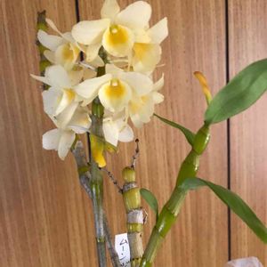 市場でデンドロビウムの枝垂れた花を発見❕ 1080円と安かったので購入😆 デンシフロルムと書かれてます‼️