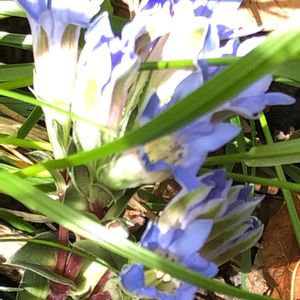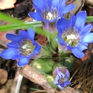 4月18日、山椒を探しに入った、陽当たりの良い雑木林の中に、ポツンと一株だけで、まるで迷子の幼な子の様な愛らしい💕姿の「フデリンドウ」が、さわやかな淡い青紫色の美しい花を見せてくれました‼️