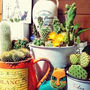 ☔… ✾咲いてる🌵見る為に中に入れました。 咲き終わった✾2つは抜きました💧 ところで✾の下にいる子ですが 何だかわかる方いらっしゃれば 教えて下さい。 🐕?🐈?🐅?🧸? 倉庫の掃除してて出没した物ですが 何か捨てるには…面白いので飾りました😅