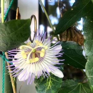 今年はグリーンカーテンに初めて時計草ピッコロッソを植えています。 1株で窓一面のカーテンを作り、こんなに可愛いお花が咲き始めました💕 つぼみも沢山あり、期待大です😆