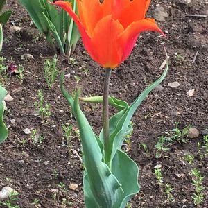 《チューリップ バレリーナ》 遅咲きのユリ咲きチューリップ、《バレリーナ》が咲きました🌷✨。オレンジ色のチューリップがまだ珍しい頃に、鉢に植えて楽しんだことを思い出しました😊🎶。オレンジ系の2色で構成されている花びらですね🧡。爽やかで甘い香りが魅力的です☺️💕。 撮影は昨日(4/16)ですが、開花は4/11でした❗️。今年はチューリップを畑にも植えたのですが、他のチューリップがほぼ終わってからバレリーナだけの開花になりました😅💦。バレリーナだけをまとめて植えるべきだったと反省してます🥺⤵︎🌷🍀。