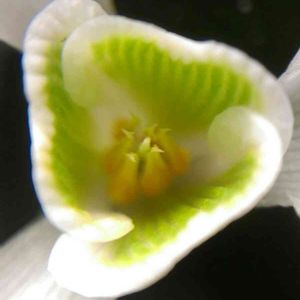 接写レンズをつけてパシャリ! この三角部分 1㎝弱サイズ 6本のオシベがギュッ! ってメシベを囲んでるね😊