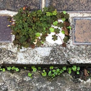剥がれたタイルの隙間ちゃん カタバミとチドメグサの色合いが良き