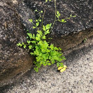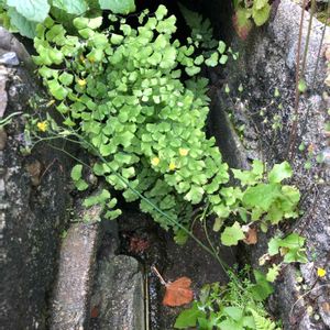 石垣の隙間ちゃん みょーんとしてて可愛い 調べてもやっぱりよくわからないシダさん カニクサだと教えていただきました 調べてみたらやはりそのようです 蔓好きにはたまらない可愛い子❤️